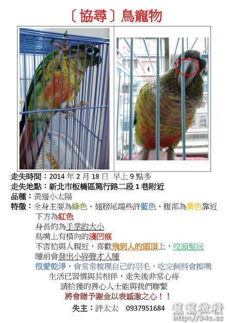 [急尋]請幫忙家中的寶貝鳥快點回家(新北板橋)