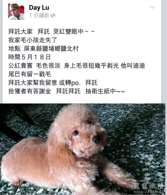 屏東縣鹽埔鄉鹽北村紅貴賓迪迪走失 禁止回覆