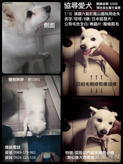 今天7/10早上6點,我家狗狗在鳳山國稅局走丟了。