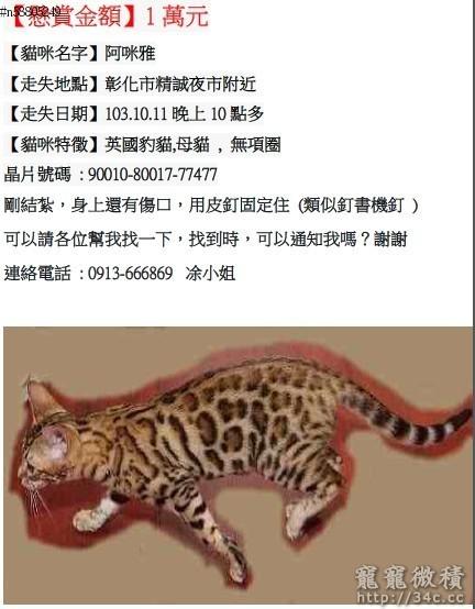 彰化市精誠夜市遺失豹貓,請各位幫忙找尋!!謝謝 禁止回覆