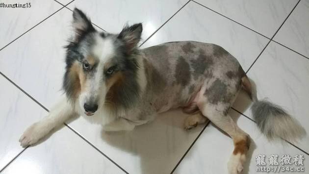 特色:喜樂蒂牧羊犬 剛剪毛 大理石色 眼睛為灰藍色 親人 易被同類吠叫.追趕