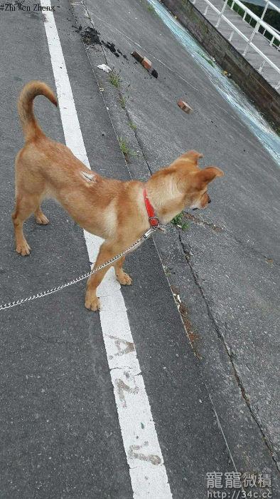 特徵:背部有明顯的疤、垂耳、紅色項圈、會聽坐下指令