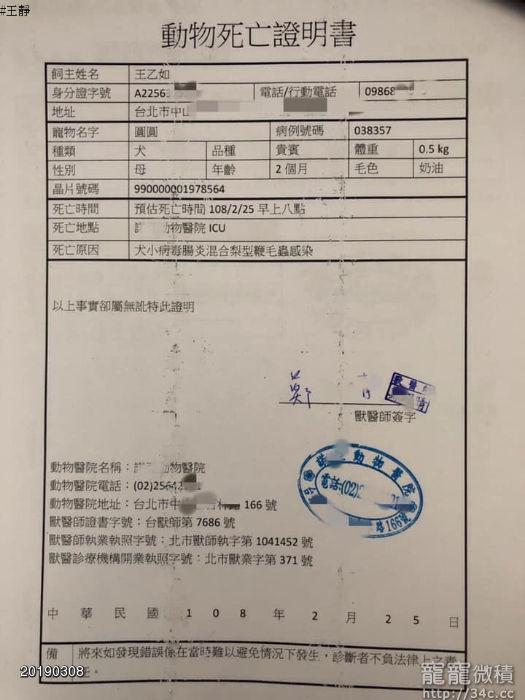 我還怕狗給你,你不救她,讓她在旁邊等死。然後回報我,救不活死了。(因為我已經檢驗出來,但寵店在推拖責任!)