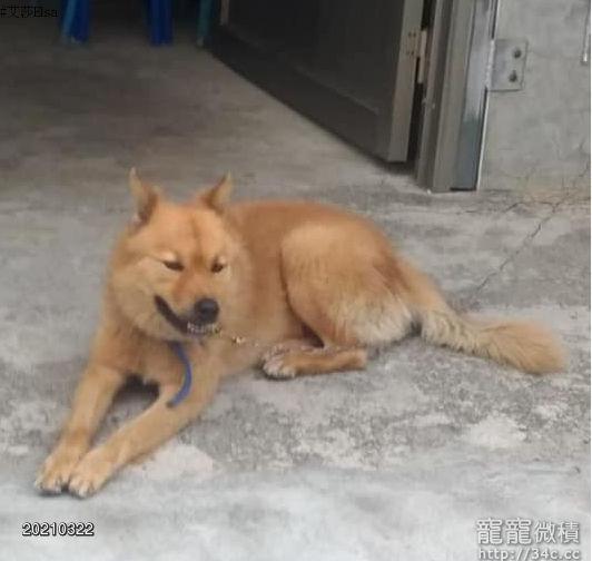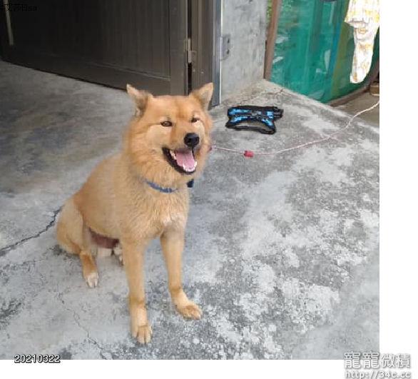 特徵:尖耳,鼻樑上有一個黑點,橘黃色的公狗,無項圈 有晶片 約17~20公斤