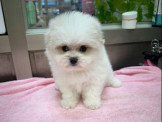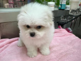 日系瑪爾濟斯幼犬雪白、蘋果臉、短吻、大眼、體型小