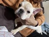 這隻法鬥名字叫作貢丸,剛滿7個月大,體重大概7kg上下,體型偏小的法鬥