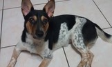身上的斑紋跟米格魯很像, 腿上還有褐色跟黑白的斑點,