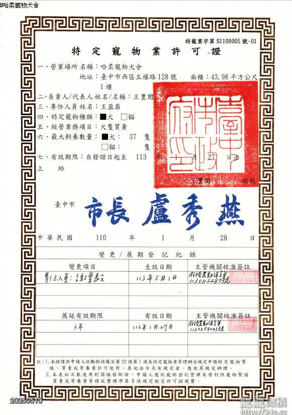 特寵業字第S1100005號